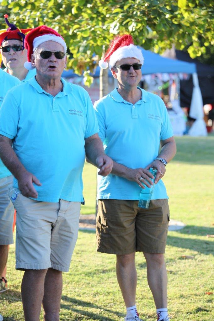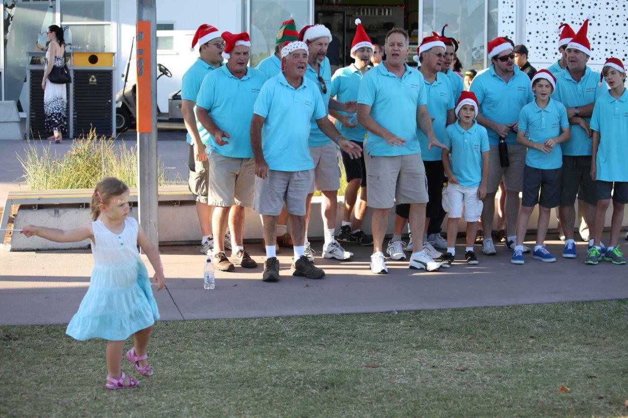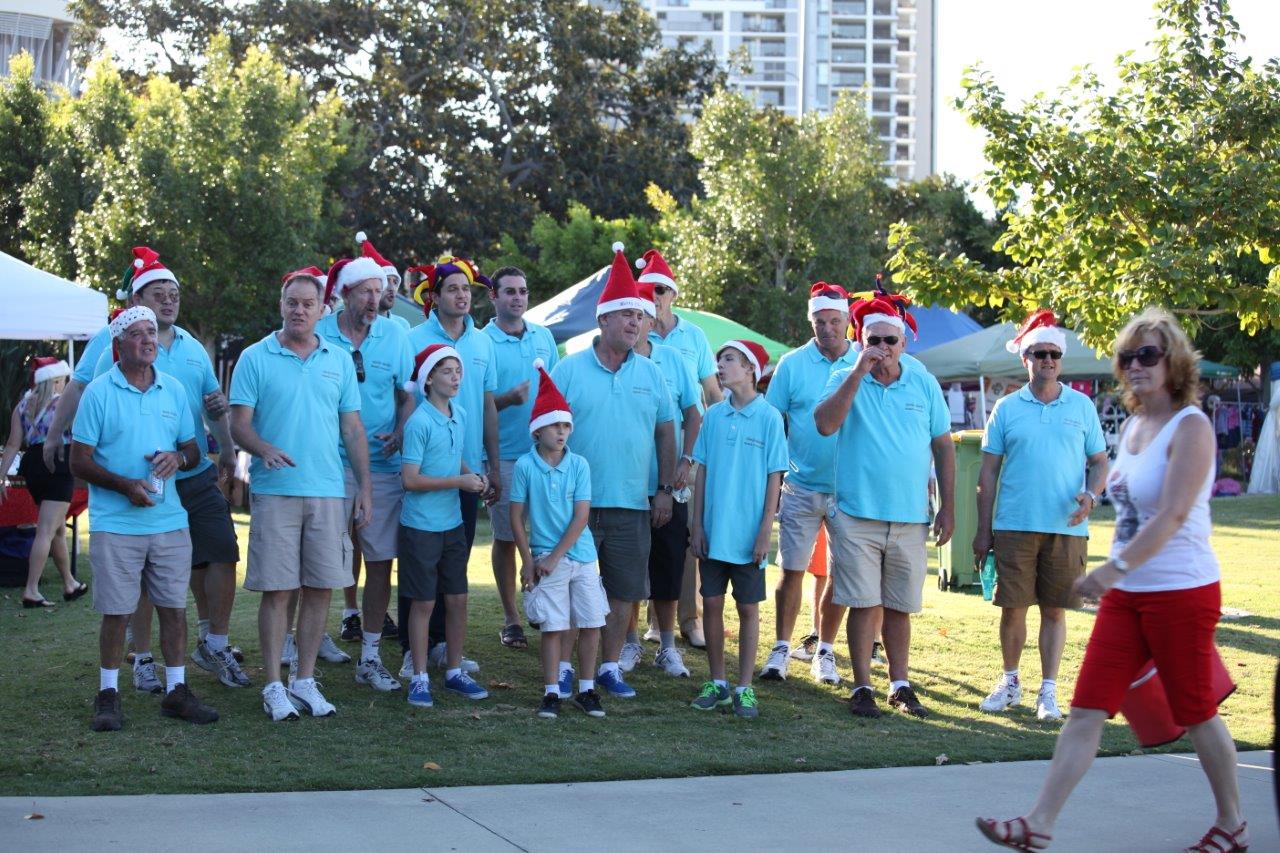 From Sanctuary Cove to the new Broadwater Parklands where the traditional Christmas Markets were just starting. With crowds gathering to spend the evening in the parklands, the chorus wandered through the markets spreading Christmas cheer to all. It was especially rewarding to sing for the appreciative audience, particularly the children.