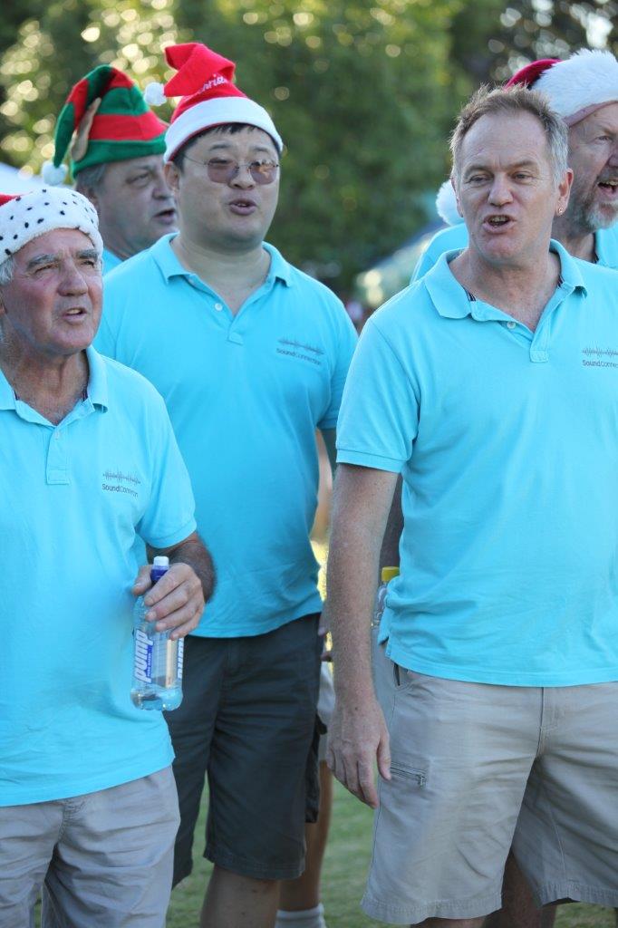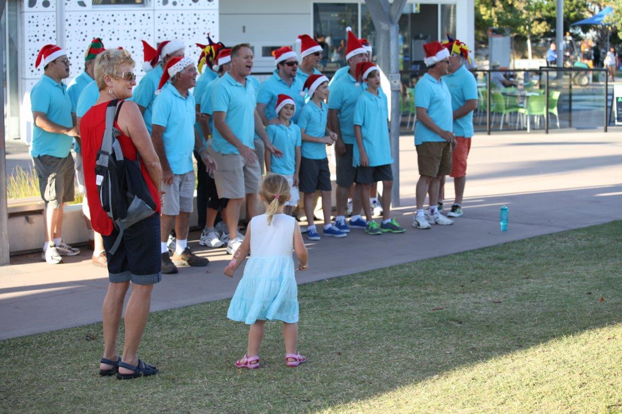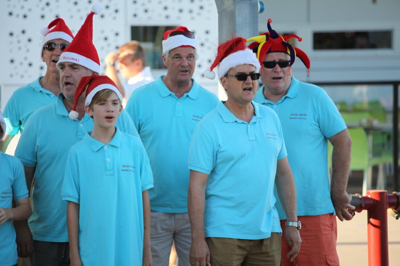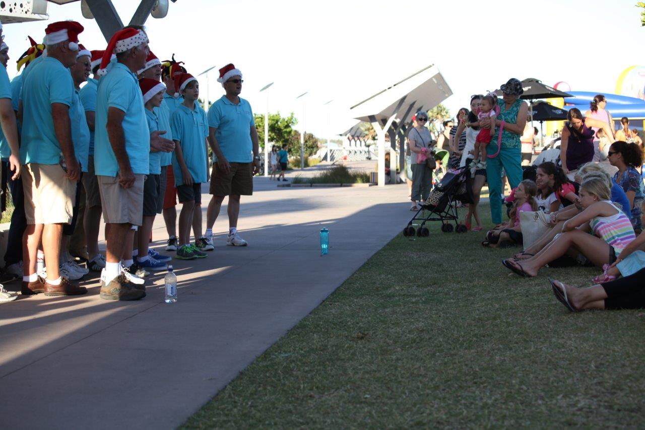 From Sanctuary Cove to the new Broadwater Parklands where the traditional Christmas Markets were just starting. With crowds gathering to spend the evening in the parklands, the chorus wandered through the markets spreading Christmas cheer to all. It was especially rewarding to sing for the appreciative audience, particularly the children.